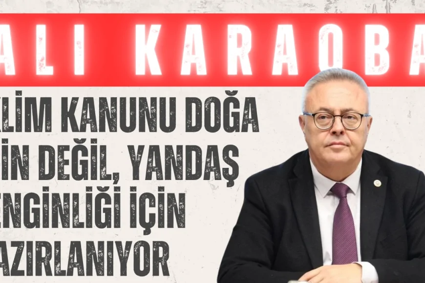CHP Uşak Milletvekili Dr. Ali Karaoba, Türkiye Büyük Millet Meclisi Genel Kurulu’nda yaptığı konuşmada iktidarın gündeme getirdiği iklim kanunu teklifine sert eleştiriler yöneltti. Karaoba, 2022’de yapılan İklim Şûrası’ndan bu yana üç yıl geçmesine rağmen ortaya çıkan kanun teklifinin ne doğayı ne de halkı koruduğunu, sadece sermayeye hizmet ettiğini savundu.