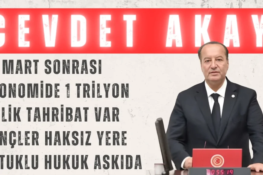 CHP Grubu adına TBMM Genel Kurulu’nda konuşan Karabük Milletvekili Cevdet Akay, 19 Mart’ta İstanbul Büyükşehir Belediye Başkanı Ekrem İmamoğlu’na yönelik başlatılan sürecin ardından Türkiye ekonomisinde oluşan büyük mali zararları ve demokratik haklarını kullanan gençlerin haksız tutuklanmalarını gündeme taşıdı.