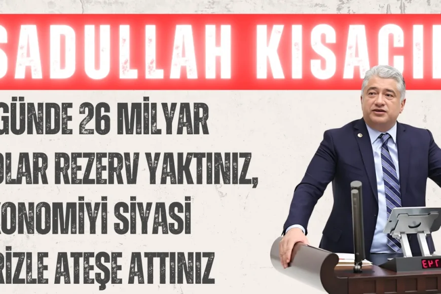 YENİ YOL Grubu adına TBMM Genel Kurulu’nda söz alan DEVA Partisi Genel Başkan Yardımcısı ve Parti Sözcüsü Sadullah Kısacık, 19 Mart’taki siyasi operasyonun ardından yaşanan ekonomik dalgalanmanın yarattığı tahribatı detaylarıyla anlattı. Kısacık, Merkez Bankası rezervlerinin erimesinden faiz artışlarına, dış borç yükünden tarım bütçesine kadar geniş bir tablo çizerek iktidarın ekonomi yönetimini sert şekilde eleştirdi.