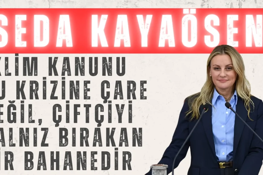 DEVA Partisi İzmir Milletvekili Seda Kaya Ösen, TBMM Genel Kurulu’nda İklim Kanunu Teklifi’nin 1. maddesi üzerine yaptığı konuşmada iklim krizinin Türkiye’de en yakıcı boyutunun su krizi olduğunu vurguladı. Ösen, mevcut yasa teklifinin su kaynakları yönetimi, tarımsal sulama ve çiftçiye destek konularında yetersiz kaldığını ifade etti.