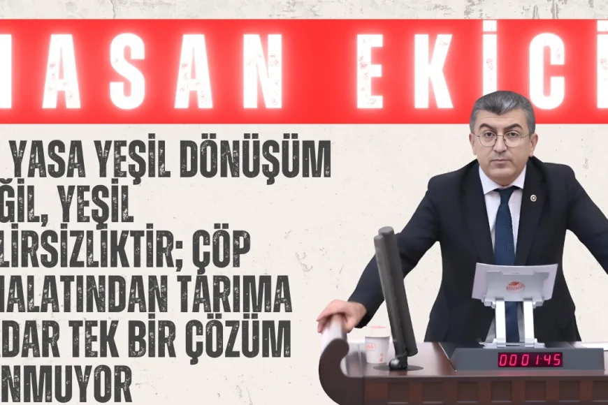Gelecek Partisi Konya Milletvekili Hasan Ekici, TBMM Genel Kurulu’nda İklim Kanunu Teklifi üzerine yaptığı konuşmada hem teklifin hazırlık sürecini hem de içerik eksikliklerini eleştirdi. Ekici, “İklim Kanunu adı verilmiş ama ortaya konan çerçeve karbon ticaretiyle sınırlı, geri kalan tüm çevresel kriz başlıkları dışarıda bırakılmış” ifadelerini kullandı.