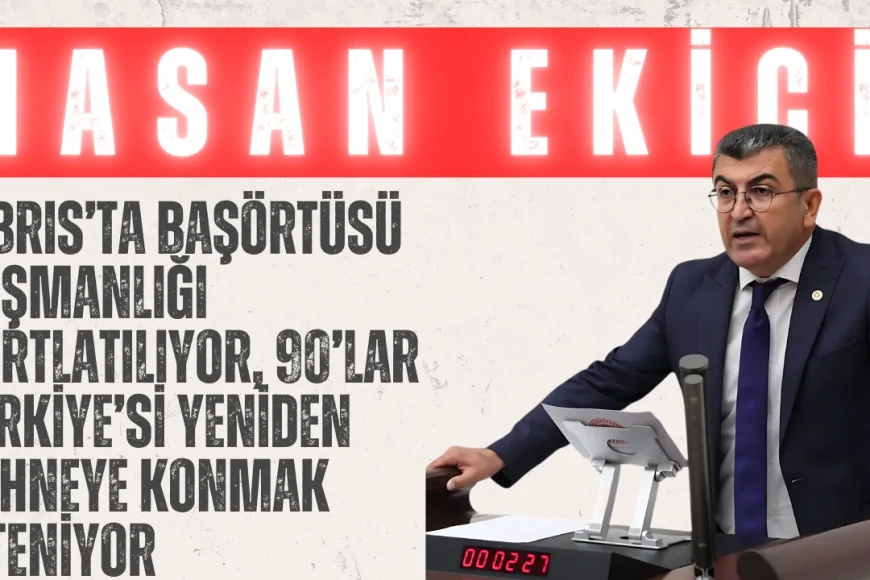 TBMM Genel Kurulu’nda İYİ Parti’nin dış politikaya yönelik grup önerisi görüşülürken söz alan Gelecek Partisi Konya Milletvekili Hasan Ekici, Kıbrıs Türk halkının karşı karşıya olduğu yeni bir tehlikeyi gündeme getirdi. Ekici, KKTC’de son dönemde yaşanan başörtüsü tartışmalarının 1990’ların Türkiye’sini hatırlattığını belirtti.