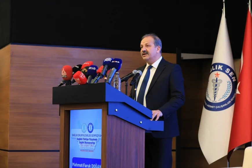 Ankara Yıldırım Beyazıt Üniversitesi ile Sağlık-Sen’in ortaklaşa düzenlediği ‘Sağlık Okuryazarlığında Bir Adım Ötesi’ başlıklı sempozyumda konuşan Sağlık-Sen Genel Başkanı Mahmut Faruk Doğan, sağlık okuryazarlığının yalnızca bireysel bilinçle sınırlı olmadığını, sağlık sisteminin etkinliği ve sağlık çalışanlarının güvenliği açısından da büyük önem taşıdığını söyledi.